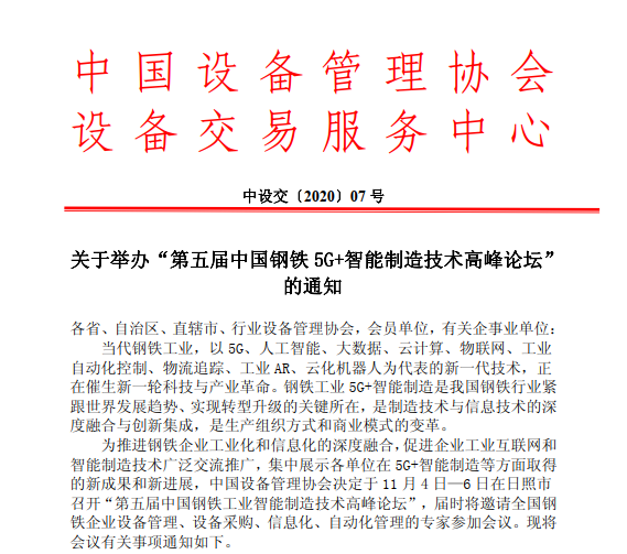 【參會(huì)信息】第五屆中國(guó)鋼鐵5G+智能制造技術(shù)高峰論壇