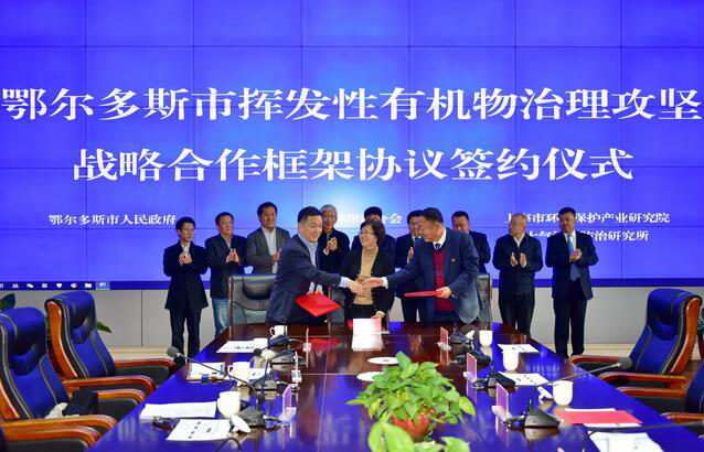 3日,鄂爾多斯市揮發(fā)性有機(jī)物治理攻堅戰(zhàn)略合作框架簽約儀式。攝影/章軻