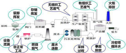 石化行業(yè) VOCs 排放以無組織排放為主,約占全部排放的 90%以上,主要以有機(jī)液體存儲(chǔ)與調(diào)和揮發(fā)、廢水收集及處理過程、設(shè)備動(dòng)靜密封點(diǎn)泄漏、有機(jī)液體裝卸揮發(fā)、冷卻塔   和循環(huán)冷卻水系統(tǒng)等 5 個(gè)源項(xiàng)排放為主。