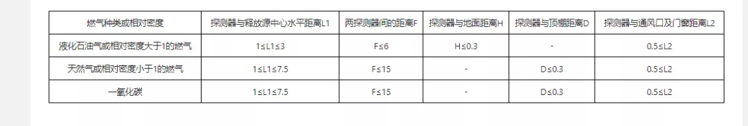 2、相鄰兩個(gè)探測器距離應(yīng)符合1表的規(guī)定;
